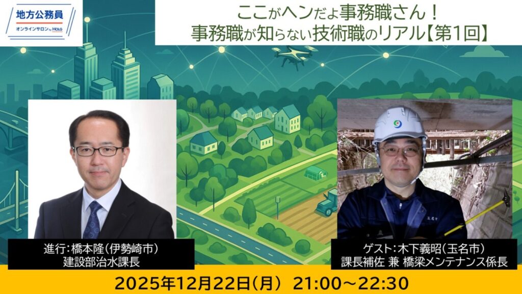 2025. 12. 4 【ご案内】伊勢崎市 橋本隆さん、玉名市 木下義昭さんが「地方公務員オンラインサロン」に出演