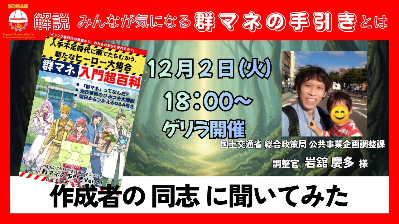 国土交通省より「群マネの手引きVer.1」が公表されました。もちろん、私なりにちゃんと読んだつもりでしたが、実際に解説してもらうと自分の理解不足を痛感しました。