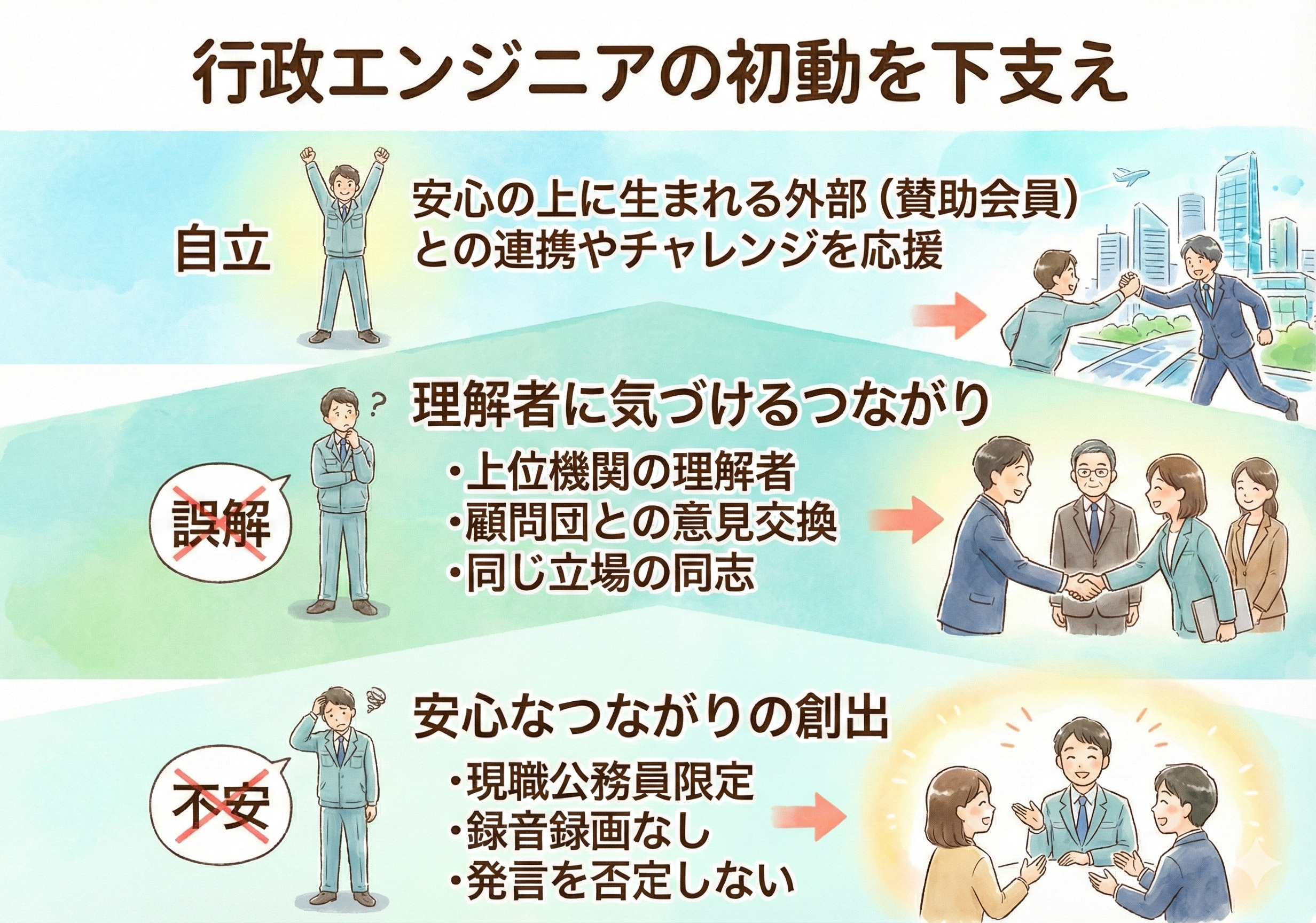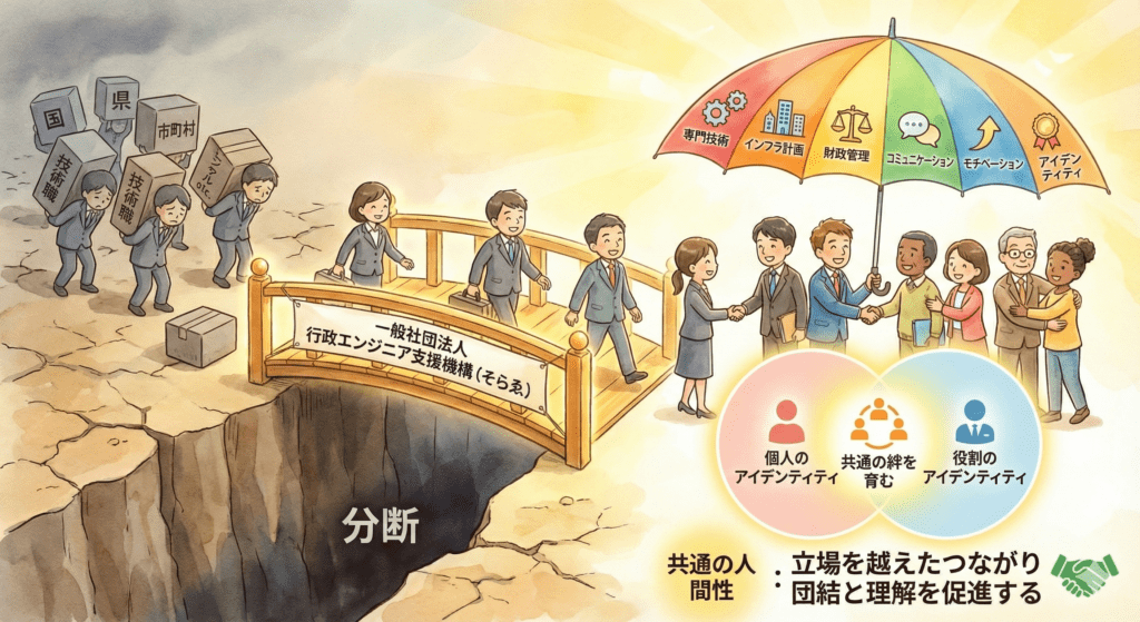 そこで当機構では、彼らを敬意と期待を込めて「行政エンジニア」と呼ぶことを提唱したいと考えております。これは単なる名称の変更ではありません。自らを「地域を支える誇り高き専門職」として再定義し、アイデンティティを確立するための試みです。
