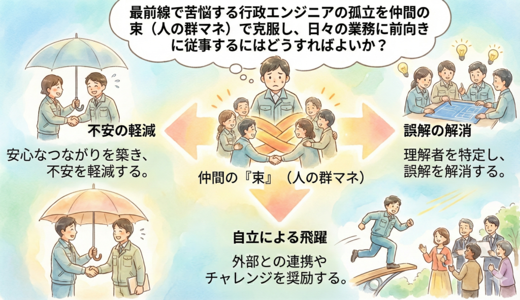 地方、特に小規模な自治体ほど技術職員は孤立しがちです。その孤立した「個人」を、全国規模でつなぎ、「束」にすることができれば、もっと多くのことができ、救える地域があるはずです。この『人の群マネ』という思想こそが、「一般社団法人 行政エンジニア支援機構(そらゑ)」を設立した原動力のひとつです。