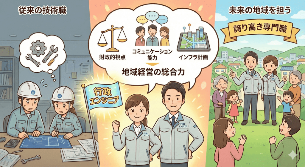 現代の技術系職員に求められるのは、設計や積算といった専門技術だけではありません。地域の将来を見据えたインフラ計画の立案、限られた予算を効果的に配分する財政的視点、そして多様な住民と対話し合意を形成するコミュニケーション能力など、まさに「地域経営」の一翼を担う総合的な能力です。