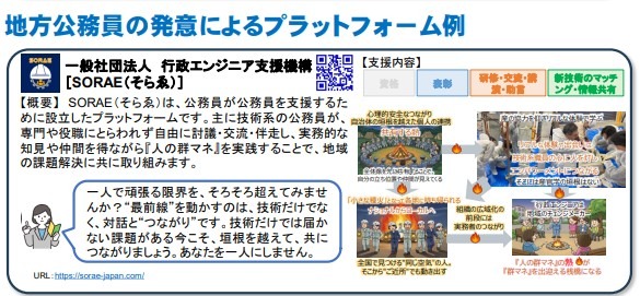 そらゑの活動は、以下に示す「第7回 群マネ計画検討会・実施検討会(国土交通省)」における[「人の群マネ」の推進について]の中に『自治体支援に関する主な取り組み』として紹介されております。