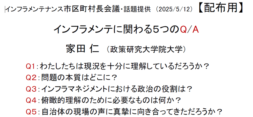 2025/5/12 インフラメンテナンス市区町村長会議全国大会における家田先生の話題提供資料